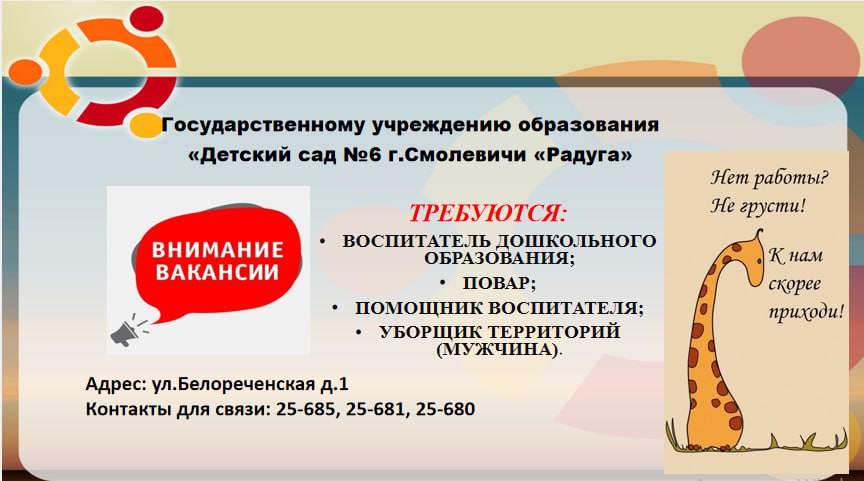 Государственное учреждение образования "Детский сад №6 г.Смолевичи "Радуга"