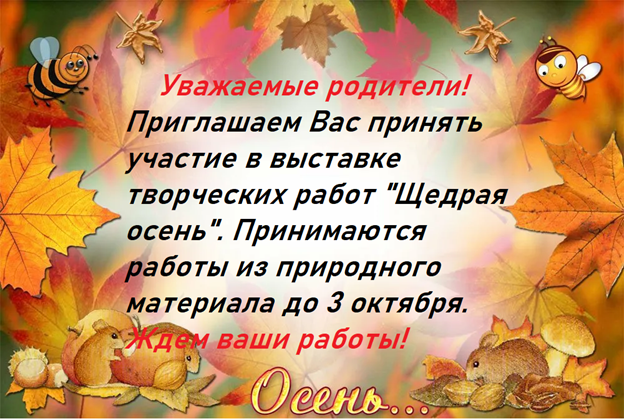 С 29 сентября по 3 октября проходит выставка поделок из природного материала «Щедрая осень”