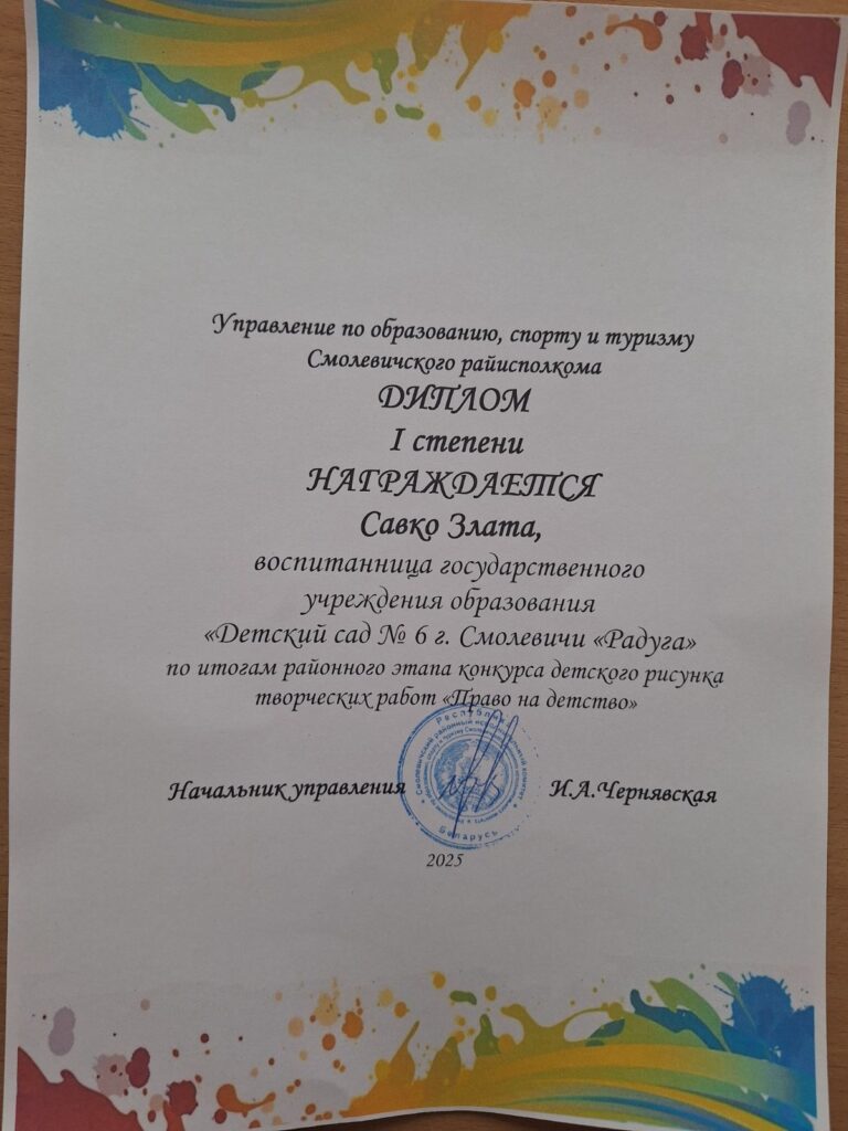 Поздравляем победителя конкурса детского рисунка “Право на детство”