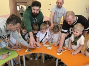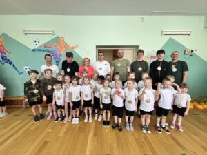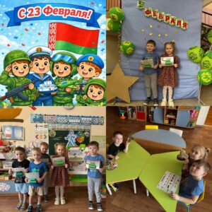 В нашем детском саду прошел музыкально-спортивный квест, посвящённые дню Защитника Отечества. На празднике воспитанники пели песни, читали стихи о защитниках родины, выполняли различные задания со своими папами. Интересно и весело прошли эстафеты «Меткий стрелок», «Обойди буйки». Все участники хорошо подготовились к состязаниям и поэтому, победила дружба. Все получили эмоциональный заряд и желание служить в рядах белорусской армии! Дети с задором участвовали в спортивных конкурсах, проявляли смекалку, быстроту, ловкость.