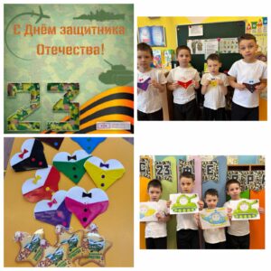 Во всех группах педагоги провели с детьми беседы, тематические занятия, читали рассказы об армии, оформили выставки, стенгазеты ко Дню защитника Отечества. Воспитанники подробно узнали о том, кто такие защитники Отечества, о разных родах войск, о военных профессиях.
