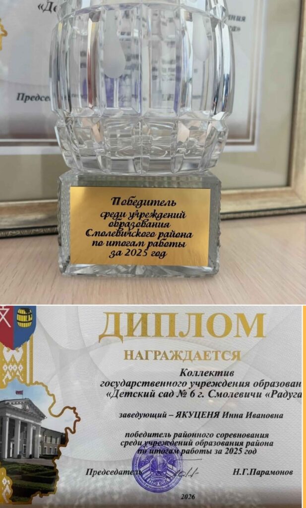 Детский сад №6 г.Смолевичи “Радуга” победитель среди учреждений образования Смолевичского района по итогам работы за 2025 год!