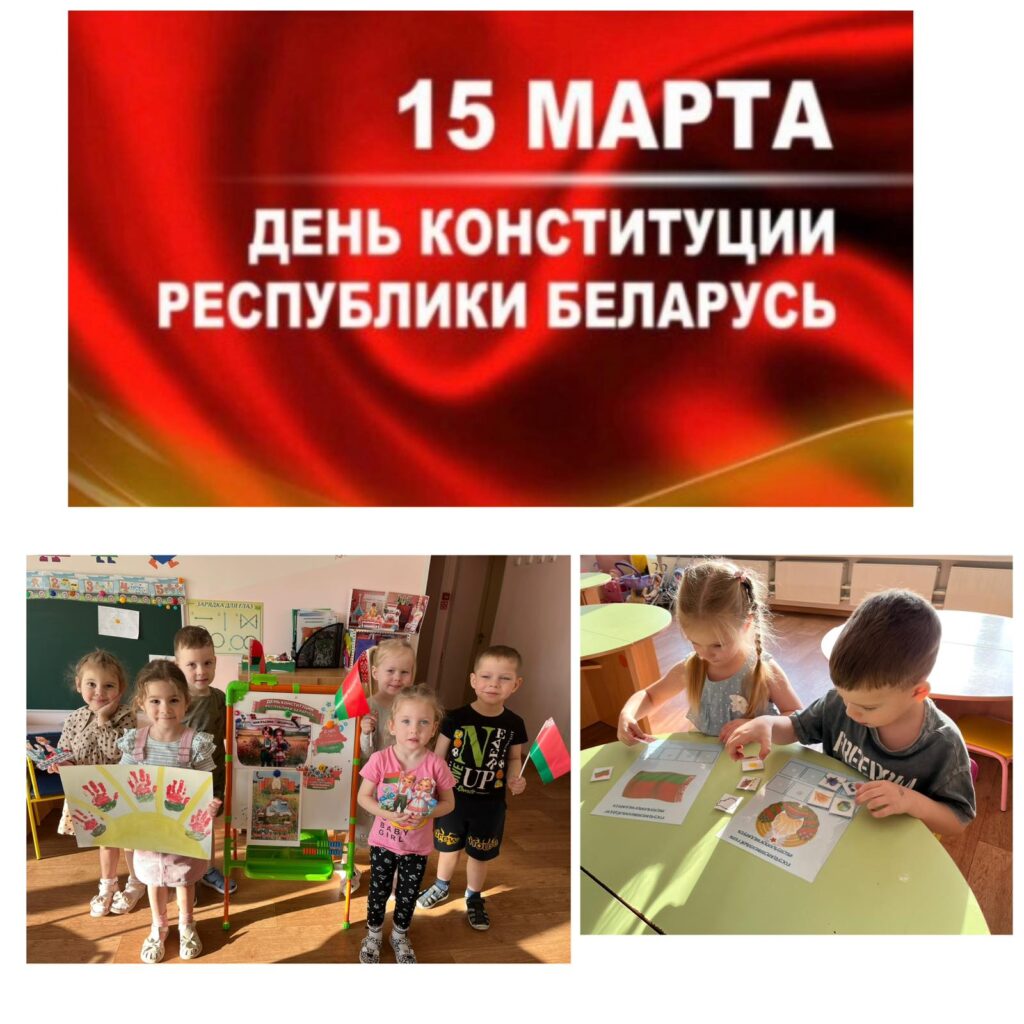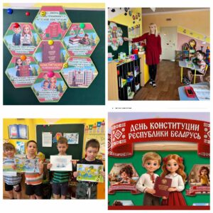 15 марта наша страна отмечает День Конституции Республики Беларусь. В преддверии праздника в нашем детском саду прошли мероприятия, посвященные этому празднику, целью которых было формирование представлений у воспитанников о Конституции Республики Беларусь, гражданских правах и обязанностях. В торжественной обстановке дети вместе с педагогами исполняли Государственный гимн Республики Беларусь. Также в игровой форме прошло воспитательное мероприятие “День Конституции Республики Беларусь”, ребята отвечали на вопросы викторины, закрепили знания о правах ребенка, о государственных символах. Конституция – основной закон, в котором прописаны права и обязанности каждого гражданина нашей страны.