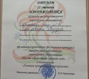 25 апреля прошел фестиваль- конкурс творчества работников учреждений образования Смолевичского района. Творческий коллектив нашего детского сада №6 г.Смолевичи “Радуга” награжден дипломом второй степени!!!